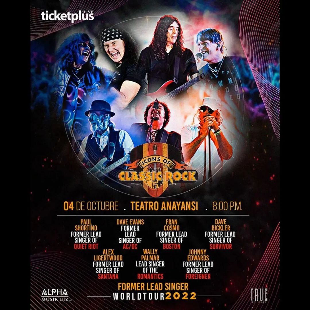 Los iconos del Classic Rock 2022 vendran finalmente el 4 de octubre del 2022, en el Teatro Anayansi público amante del rock clásico podrá disfrutar de un concierto espectacular de más de dos horas y media, lleno de energía y grandes sorpresas, en su gira mundial que comenzó por México y Sudamérica con los ex-cantantes de varias agrupaciones de renombre mundial.